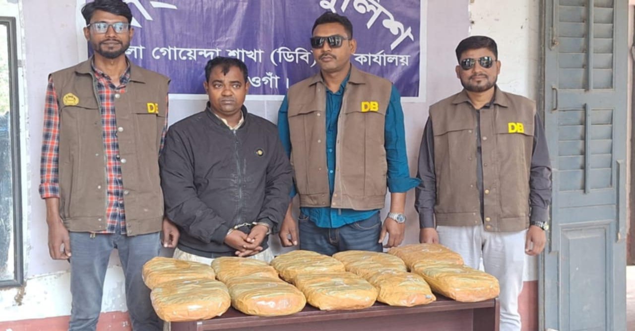 ডিবি পুলিশ সূত্রে জানা যায়, গোপন সংবাদের ভিত্তিতে শনিবার দিনগত রাতে চকমুক্তার এলাকার একটি পার্সেল সার্ভিস প্রতিষ্ঠানের সামনে অভিযান চালায় ডিবি পুলিশের একটি দল। এ সময় মিঠুন আলী নামের ওই ব্যক্তিকে সন্দেহভাজন হিসেবে আটক করে পুলিশ। পরে তার হাতে থাকা একটি সাদা প্লাস্টিকের বস্তা তল্লাশি করে ১০টি প্যাকেটে মোড়ানো সাড়ে ৯ কেজি গাঁজা উদ্ধার করা হয়। জব্দকৃত গাঁজার আনুমানিক বাজারমূল্য প্রায় ২ লাখ ২৮ হাজার টাকা।